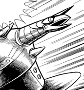 Jeronigan was gigantic in size with a bird shaped had and large flat body, its tail is tipped by various thrusters.