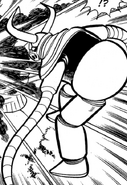 Mecha Nihonki was a humanoid Hyakki Beast, it had long whip like arms, a shelled body, large curved bull horns and a face with a grill plate, not to far reminiscent of Mazinger Z.