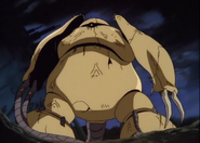 Barzof 8000D is a massive metal beast that appears in the Getter Robo Go Manga, the OVA Getter Robo Armageddon and the video game Super Robot Wars Z2. In Armageddon, it appears in episode 5. The Barzofs were destroyed by the Invaders, and their remains were fashioned into Metal Beast Barzof. It was destroyed in episode 6 by Shin Getter Robo (Mecha)